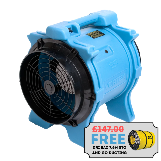Its portable design includes a sturdy carry handle and stackable body, while a simple 2-way switch keeps operation hassle-free. Use the Vortex solo or connect up to 38m of ducting for added reach – perfect for creating negative pressure or directing airflow through buildings.