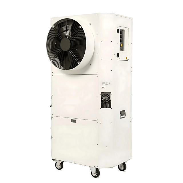 The Comcool is ideal for warehouses, factories, agricultural buildings, and event spaces. It also features a built-in water filter and a purge system, ensuring reliable, clean operation over time. Please note, evaporative coolers require good ventilation and are not suitable for sealed or humidity-sensitive environments such as server rooms.